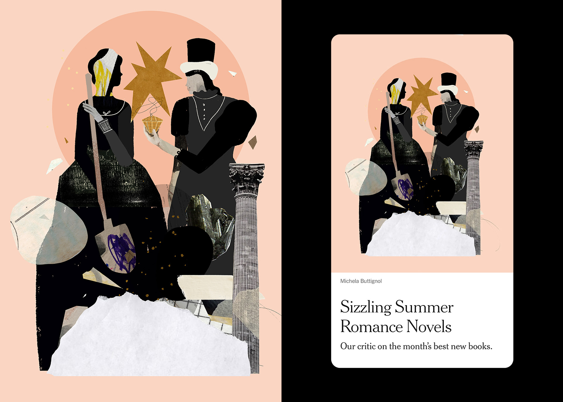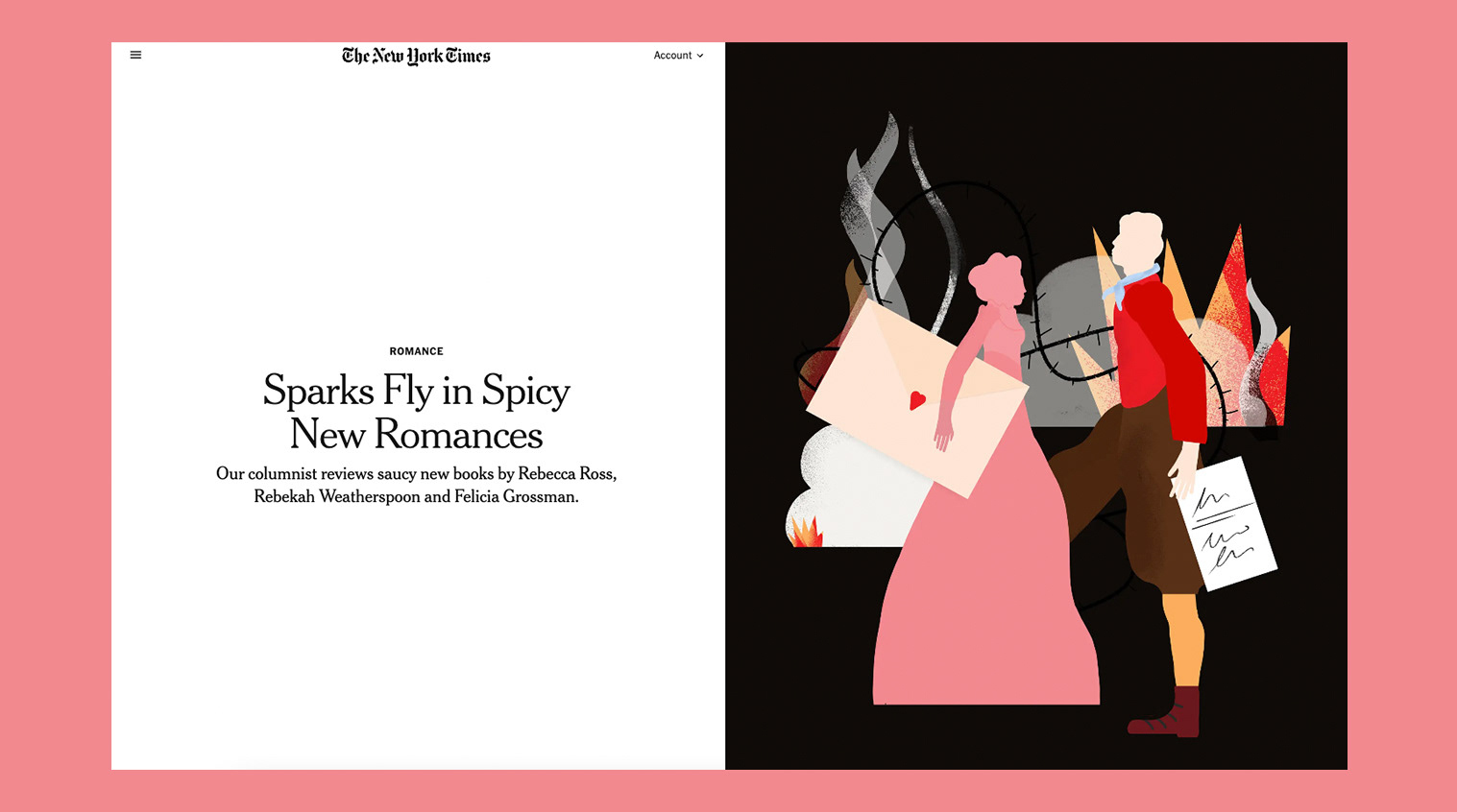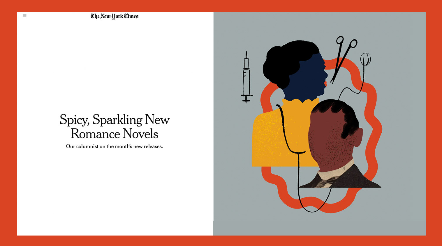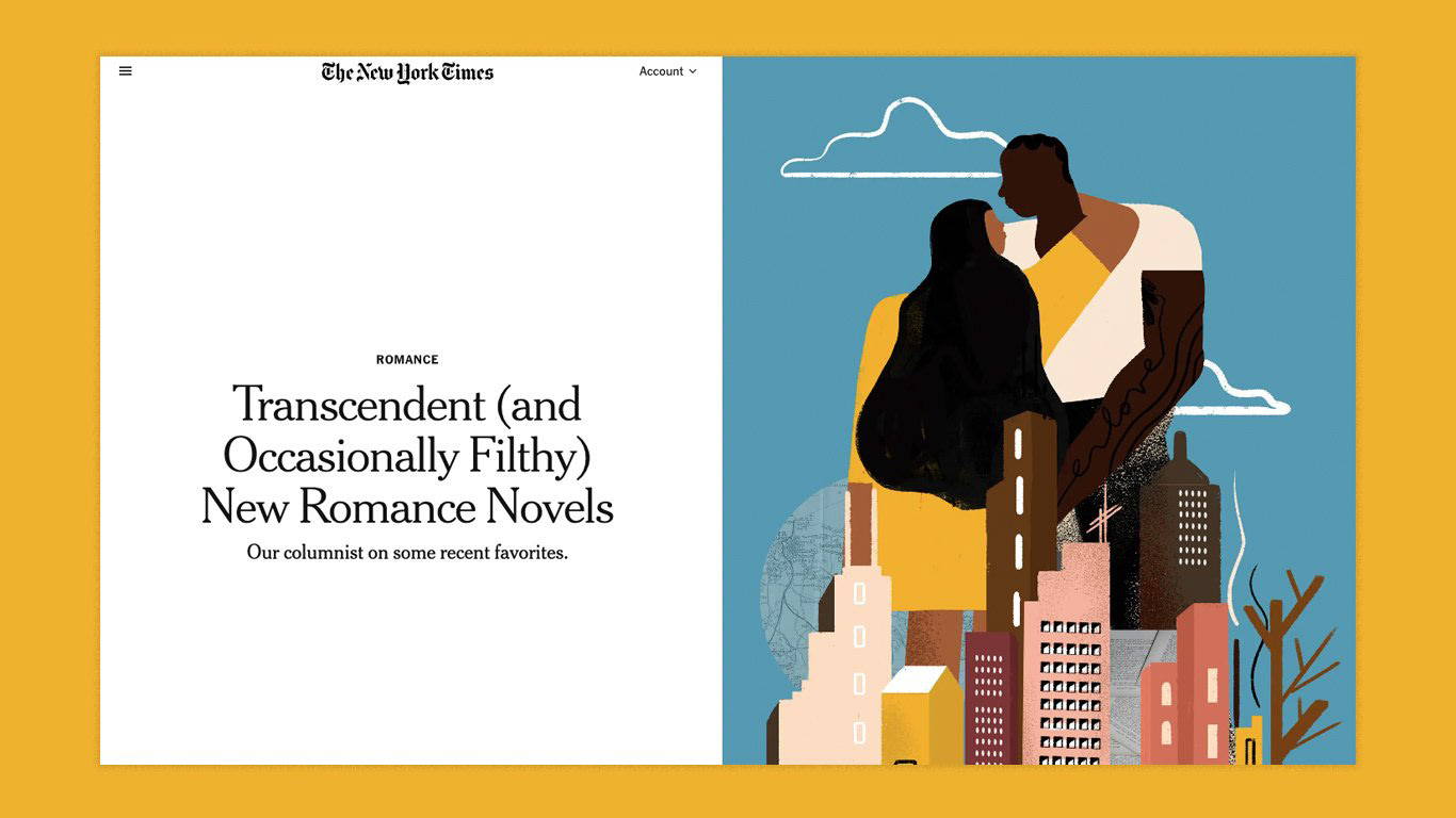 A series of editorial illustrations for the column Romance by Olivia Waite. Critical essays on the romance genre’s history and future.