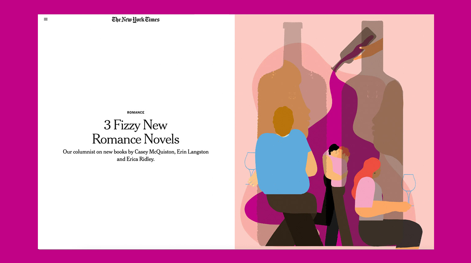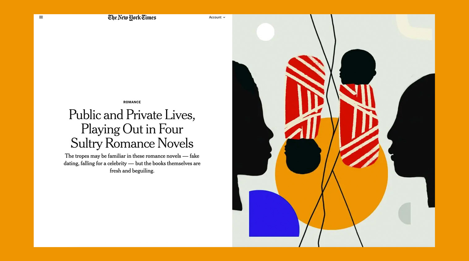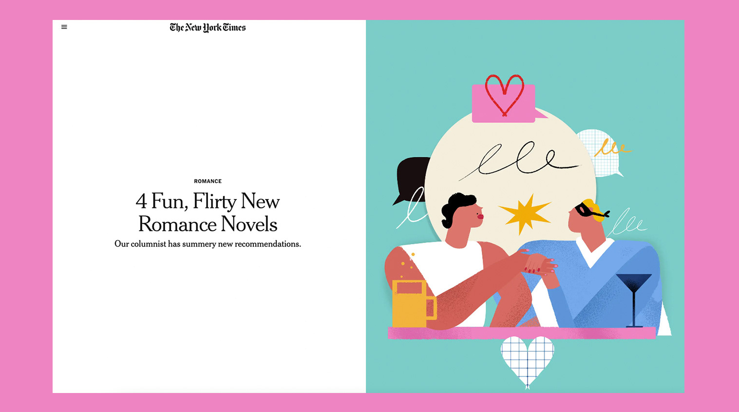 A series of editorial illustrations for the column Romance by Olivia Waite. Critical essays on the romance genre’s history and future.